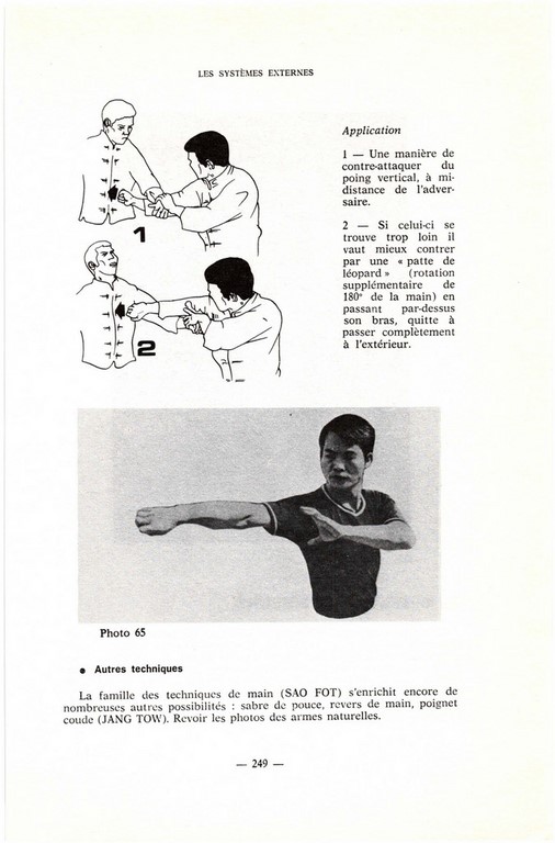 En présentant ce nouveau livre au public passionné d'arts martiaux nous n'avons pas voulu céder une mode éphémère ; cet ouvrage s'inscrit dans la même optique que celle qui a été appréciée dans notre "Karaté-Do", à savoir, faire le point sur un art martial particulièrement délicat à circonscrire par le néophyte, informer à partir d'une documentation abondante puisée auprès de maîtres représentatifs des principales écoles et risquer une première synthèse h travers la jungle des styles. Nous voulions, pour la première fois à notre connaissance, intégrer dans un même manuel tous les aspects du Kung-Fu afin d'en faire une base commune particulièrement utile lors d'un premier contact, et à partir de laquelle le choix d'un style ou d'une école s'avérera plus facile. Afin de lui conserver ce caractère de recueil technique complet, tout en restant dans les limites d'un volume raisonnable, nous avons restreint le texte explicatif à l'essentiel. A travers de multiples facettes, le Kung-Fu est une réalité unique et passionnante. Notre ambition est de vous en convaincre dans les pages suivantes. Bien entendu une telle tentative aurait été vouée à l'échec si nous n'avions pu établir des contacts fructueux avec d'authentiques "sifu" (maîtres de Kung-Fu) de Hong-Kong et de Taiwan et sans l'aide précieuse que nous avons rencontré auprès de nombreuses personnalités chinoises qui ont bien voulu nous appuyer dans notre projet...