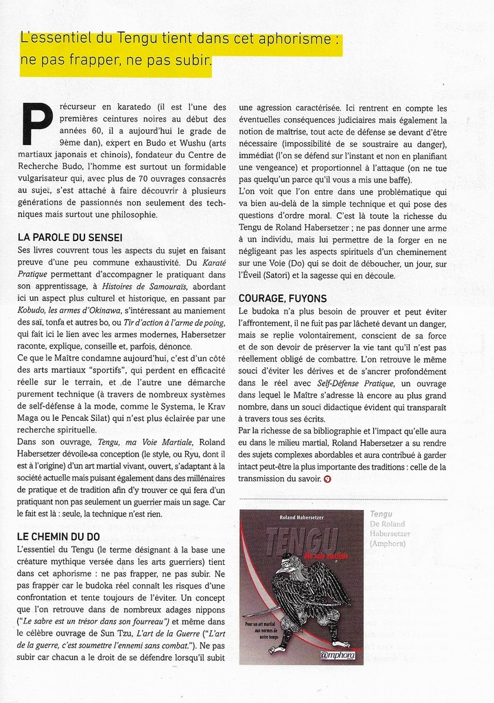 Quelques présences de Roland Habersetzer Sensei, articles, interviews, reportages, dans des publications internationales d'avant 2003, récemment retrouvées dans une partie de ses archives... et jamais réapparues depuis. Mais saura-t-on jamais le nombre de textes et de travaux, qui remontent à 1970, de celui qui est devenu Soke du Tengu-ryu (hors ses nombreuses publications d'ouvrages, menées parallèlement). Voici déjà un fichier "collector", qui pourrait encore s'enrichir après d'autres recherches archéologiques (encore que ce soit quasi « mission impossible » !)...
