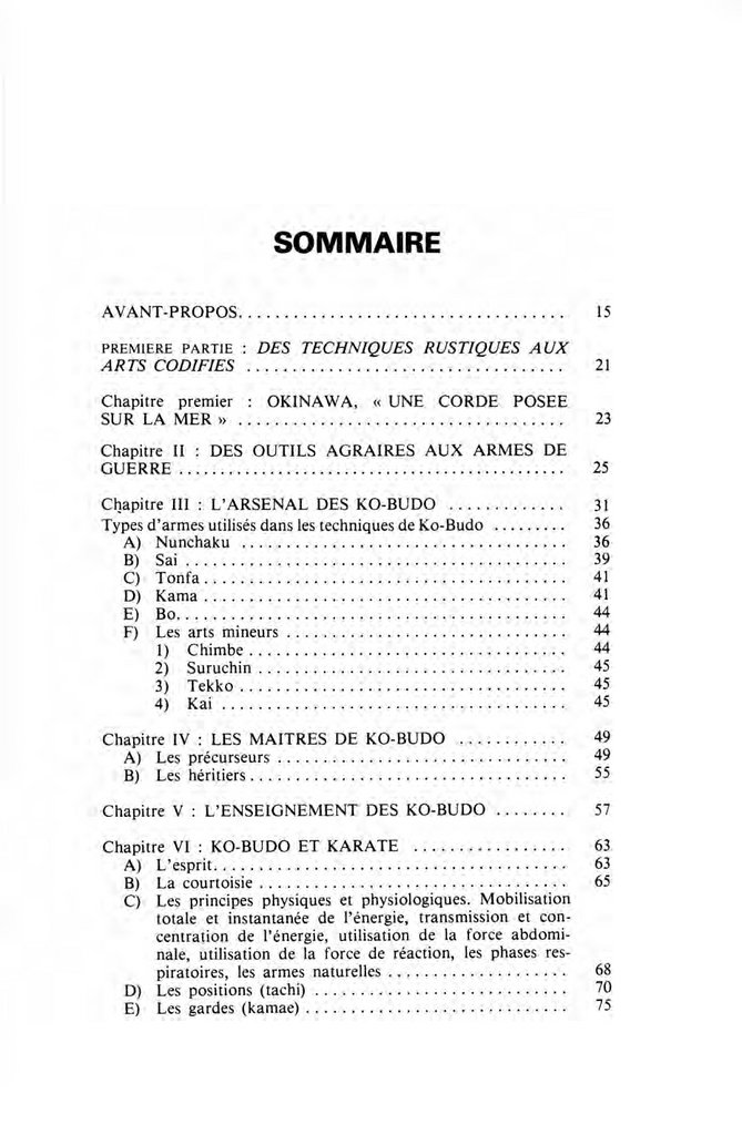 Il s'agit d'arts de guerre se pratiquant avec des armes qui sont en général de vulgaires instruments agraires (utilisés pour la moisson, le battage du riz, la pêche, etc) adaptés aux techniques locales de combat sans armes (type Karaté ancien, alors appelé Naha-Te, Shuri-Te ou To-De). De cette synthèse résultèrent des techniques d'autodéfense originales et relativement complexes, en tous cas inattendues, qui firent des ravages parmi les envahisseurs. Depuis l'engouement pour le Karaté, l'intérêt pour les Ko-Budo d'Okinawa n'a cessé de grandir