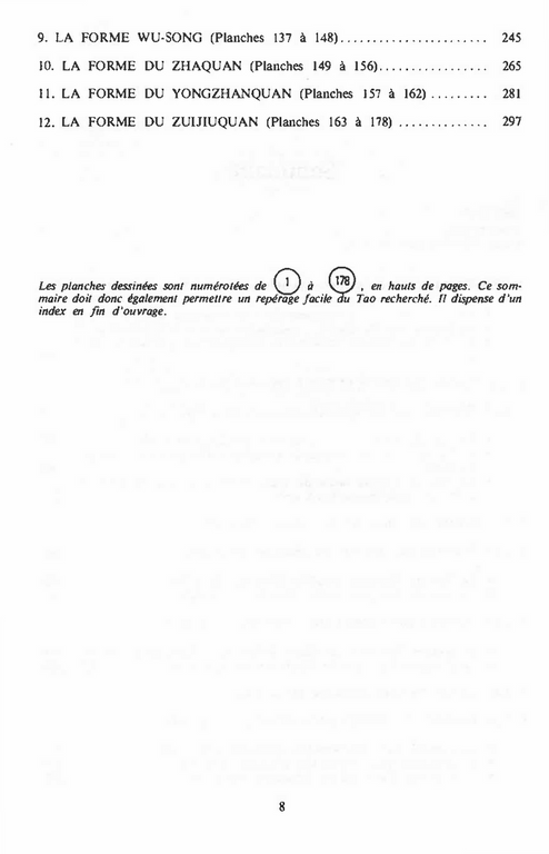 Très nombreux ont été les lecteurs de l'Encyclopédie des Arts Martiaux " à me réclamer cet ouvrage venant en complément indispensable "Kung-Fu art et technique" et "Kung-Fu de combat", qui avaient largement éveillé leur intérêt pour la Voie chinoise des arts martiaux. Il est certain qu'on ne peut évoquer le Kung-Fu en en occultant ses Tao, qui sont pour lui ce que les Kata sont au karatédo traditionnel japonais, soit les racines de l'art, le label d'authenticité, l'ossature d'une progression. Les Tao (Kuen Tao) sont des enchaînements de combat. séquences codifiées et traditionnelles, remontant parfois aux sources du style, que l'on exécute seul en Face d'adversaires imaginaires. La décision qui était donc à prendre, pour réaliser un tel sujet, était évidente sur le principe. Mais c'est l'exécution pratique de ce projet qui posait problème et me l'avait fait écarter jusqu'ici, au profit d'autres titres parus depuis dans cette collection. Qu'on y songe : avec plus de 400 styles plus ou moins reconnus, cela porte les Tao représentatifs à plusieurs centaines (exécutés avec ou sans armes). sans compter bien entendu les séquences tronquées dans un but pédagogique et celles qui ont été mises au point plus récemment, par besoin démonstratif ou souci d'originalité à tout prix pour certains styles avides de publicité. Et, s'ajoutant à l'usure du temps et à la coalescence des techniques dans un monde où la vie de relation a fini par décloisonner tous les styles, la contribution (puis, inévitablement, la rivalité) des groupes, associations et fédérations toutes plus représentatives les unes que les autres, ont dilué à ce point les Tao originels que les filières authentiques sont devenues plus que difficiles à reconstituer. Rançon du succès, d'où une complexité bien supérieure à celle qui existe même en karaté (où les choses se compliquent pourtant également à mesure que les années passent, et pour les mêmes raisons). A l'issue d'une énorme et laborieuse phase de documentation, puis de mise en forme pour en harmoniser la présentation, voici une sélection de 20 Tao. en 2260 dessins, représentant 12 écoles différentes.