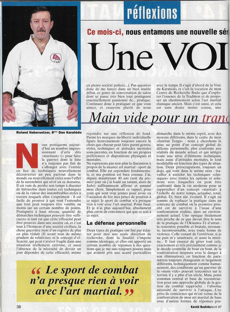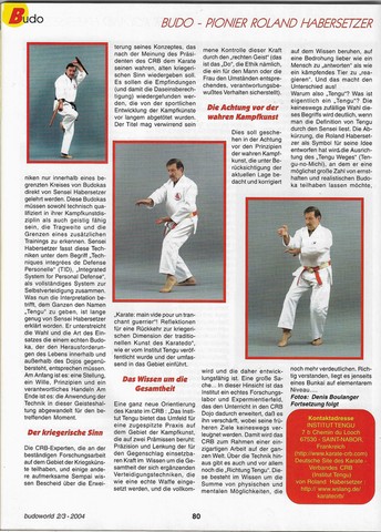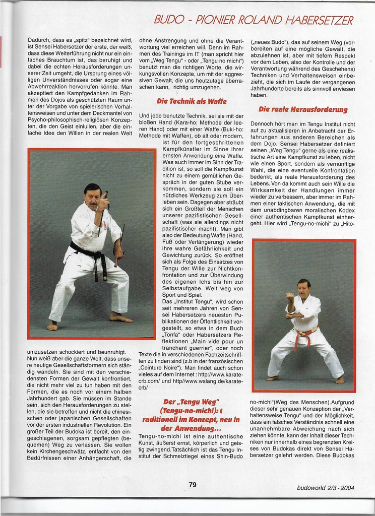 Quelques présences de Roland Habersetzer Sensei, articles, interviews, reportages, dans des publications internationales d'avant 2003, récemment retrouvées dans une partie de ses archives... et jamais réapparues depuis. Mais saura-t-on jamais le nombre de textes et de travaux, qui remontent à 1970, de celui qui est devenu Soke du Tengu-ryu (hors ses nombreuses publications d'ouvrages, menées parallèlement). Voici déjà un fichier "collector", qui pourrait encore s'enrichir après d'autres recherches archéologiques (encore que ce soit quasi « mission impossible » !)...