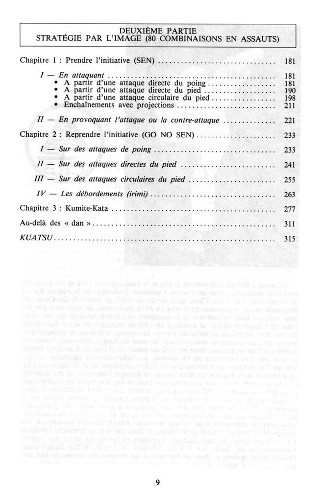 Vous avez obtenu la « ceinture noire », ou êtes dans la dernière phase de préparation à cet examen vers lequel tendent vos efforts depuis que vous avez revêtu votre keikogi pour la première fois. Mais vous savez aussi, depuis, qu'il ne sera qu'une nouvelle étape. D'autres champs d'investigation et de progression s'ouvrent désormais devant vous, dépassant les perspectives initiales. Vous avez compris que « l'après ceinture-noire » est un nouveau commencement et qu'une vie ne suffira pas à atteindre le bout de cette route passionnante. Voici les derniers conseils et directions de recherches que nous pensons pouvoir vous apporter à ce moment crucial de votre vie de karatéka. Ce livre vous accompagnera encore quelques temps. Jusqu'à ce que, un jour, vous sentiez que vous avez commencé à cheminer sur "la Voie" où l'on va seul...