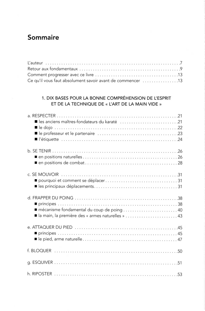 Accompagnées de descriptifs allant à l'essentiel, résumé en « points-clés», ces techniques sont les FONDAMENTAUX des deux styles de karaté les plus développés en France, qu'il faut étudier en KIHON répétitifs pour formater la mémoire musculaire.