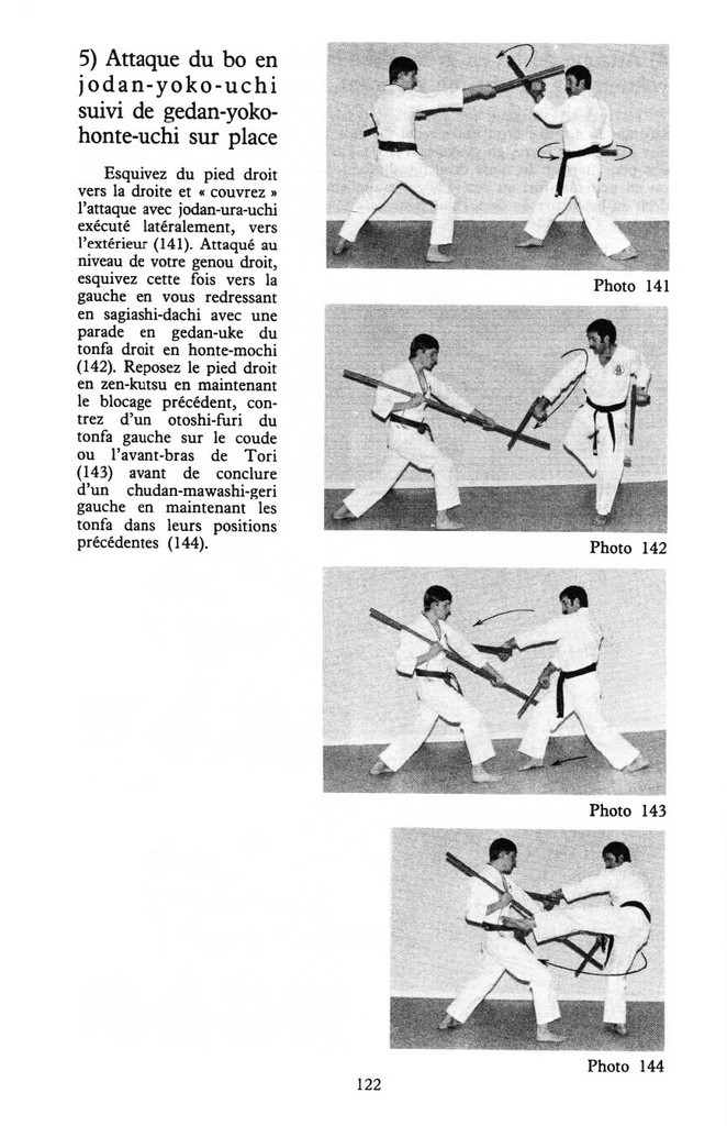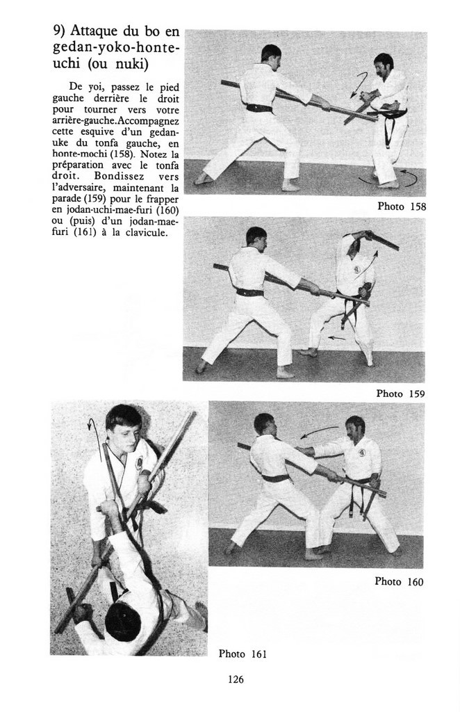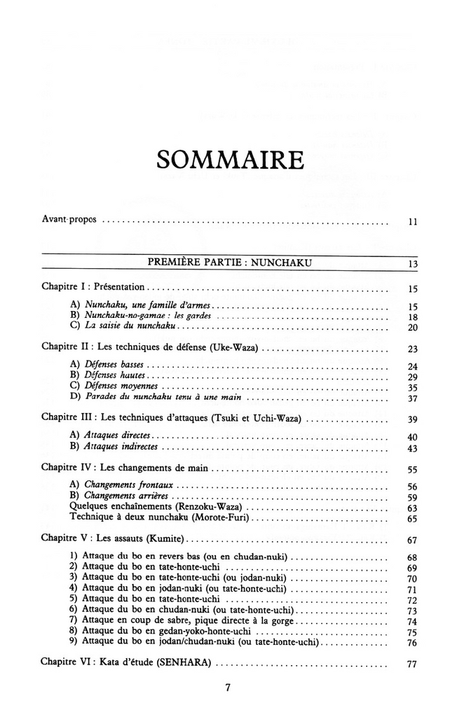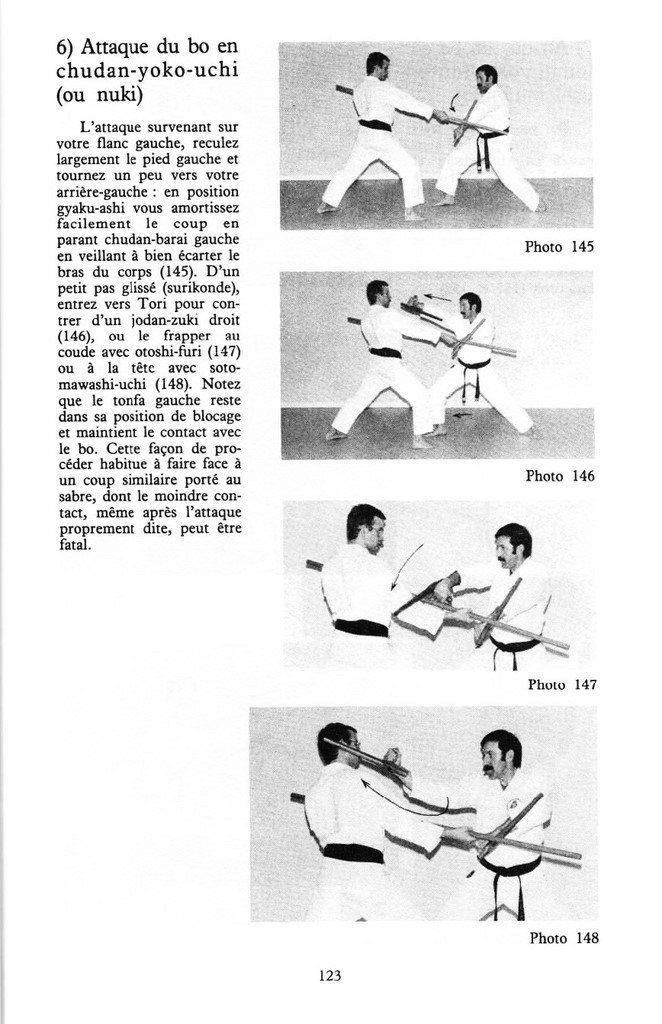 Nunchaku et Tonfa sont deux autres arts majeurs des Ko-Budo d'Okinawa. Comme celle du Sai, leur maîtrise est complexe, au-delà d'une manipulation élémentaire mais suffisante pour créer l'illusion de l'efficacité, piège classique des techniques martiales venues d'orient. On ne peut que regretter qu'une pratique primaire et hâtive suffise à certains pour faire étalage d'une violence retranchée derrière une soi disante nécessité d'autodéfense. Cela provoque parfois, hélas, certains débordements de "justiciers" au nunchaku, faits divers repris par une presse déjà peu tendre avec les arts martiaux, ou, au mieux, des démonstrations publiques qui tiennent plus du cirque que de l'affirmation de quelque chose de vraiment profond. Le folklore dont s'entoure parfois le Ko-Budo, pour plaire lors de telles démonstrations, médias obligent, fait passer à coté de l'essentiel. Et ne parlons même pas des formes sportives de ces arts qui ont déjà permis de mettre sur pied des Championnats de nunchaku. C'est, à chaque fois, tout autre chose que l'art proposé par les derniers maîtres de Ko-Budo. Sortis de leur contexte, les Ko-Budo ne sont plus les Ko-Budo : il en reste des outils plus ou moins étranges, qui sont aussi devenus des armes. Mais celles-ci ne peuvent intéresser le Budoka que dans le cadre d'un dojo.