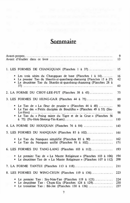 Très nombreux ont été les lecteurs de l'Encyclopédie des Arts Martiaux " à me réclamer cet ouvrage venant en complément indispensable "Kung-Fu art et technique" et "Kung-Fu de combat", qui avaient largement éveillé leur intérêt pour la Voie chinoise des arts martiaux. Il est certain qu'on ne peut évoquer le Kung-Fu en en occultant ses Tao, qui sont pour lui ce que les Kata sont au karatédo traditionnel japonais, soit les racines de l'art, le label d'authenticité, l'ossature d'une progression. Les Tao (Kuen Tao) sont des enchaînements de combat. séquences codifiées et traditionnelles, remontant parfois aux sources du style, que l'on exécute seul en Face d'adversaires imaginaires. La décision qui était donc à prendre, pour réaliser un tel sujet, était évidente sur le principe. Mais c'est l'exécution pratique de ce projet qui posait problème et me l'avait fait écarter jusqu'ici, au profit d'autres titres parus depuis dans cette collection. Qu'on y songe : avec plus de 400 styles plus ou moins reconnus, cela porte les Tao représentatifs à plusieurs centaines (exécutés avec ou sans armes). sans compter bien entendu les séquences tronquées dans un but pédagogique et celles qui ont été mises au point plus récemment, par besoin démonstratif ou souci d'originalité à tout prix pour certains styles avides de publicité. Et, s'ajoutant à l'usure du temps et à la coalescence des techniques dans un monde où la vie de relation a fini par décloisonner tous les styles, la contribution (puis, inévitablement, la rivalité) des groupes, associations et fédérations toutes plus représentatives les unes que les autres, ont dilué à ce point les Tao originels que les filières authentiques sont devenues plus que difficiles à reconstituer. Rançon du succès, d'où une complexité bien supérieure à celle qui existe même en karaté (où les choses se compliquent pourtant également à mesure que les années passent, et pour les mêmes raisons). A l'issue d'une énorme et laborieuse phase de documentation, puis de mise en forme pour en harmoniser la présentation, voici une sélection de 20 Tao. en 2260 dessins, représentant 12 écoles différentes.
